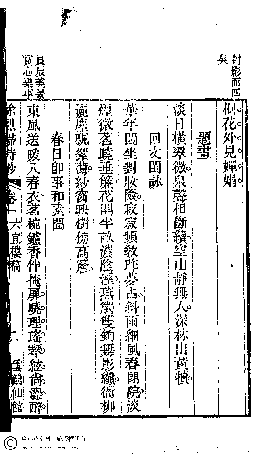 | 原書: 徐烈婦詩鈔﹕二卷﹐附吳絳雪年譜﹕一卷(清吳宗愛撰) |