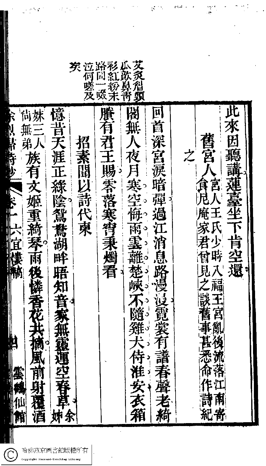 | 原書: 徐烈婦詩鈔﹕二卷﹐附吳絳雪年譜﹕一卷(清吳宗愛撰) |