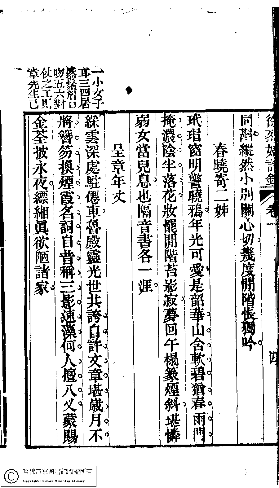 | (PRINT FRIENDLY VERSION) 徐烈婦詩鈔﹕二卷﹐附吳絳雪年譜﹕一卷(清吳宗愛撰)。清光緒元年(1875)雲鶴仙館刻本。 ![]() 頁碼 : 1.4b | 点 击 放 大 | 返回 |