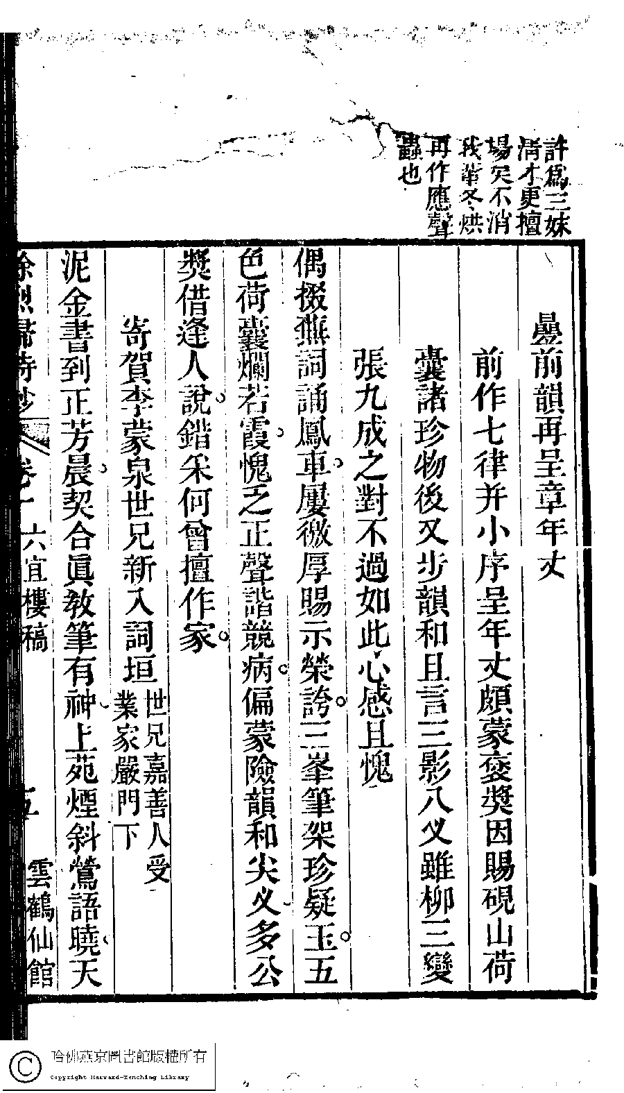 | 原書: 徐烈婦詩鈔﹕二卷﹐附吳絳雪年譜﹕一卷(清吳宗愛撰) |