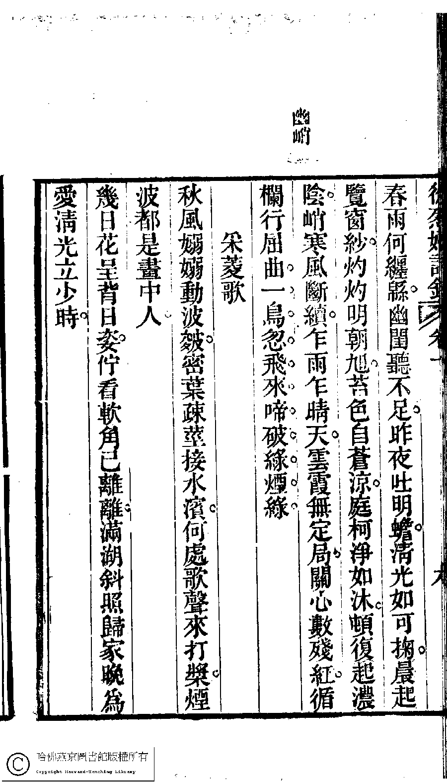 | 原書: 徐烈婦詩鈔﹕二卷﹐附吳絳雪年譜﹕一卷(清吳宗愛撰) |
