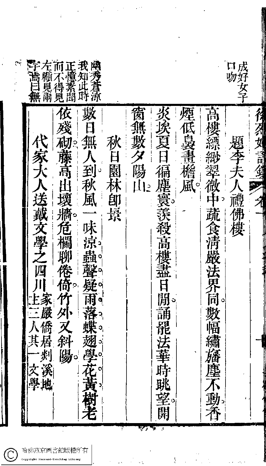 | 原書: 徐烈婦詩鈔﹕二卷﹐附吳絳雪年譜﹕一卷(清吳宗愛撰) |