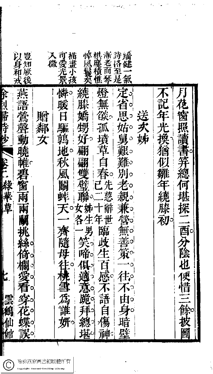 | 原書: 徐烈婦詩鈔﹕二卷﹐附吳絳雪年譜﹕一卷(清吳宗愛撰) |