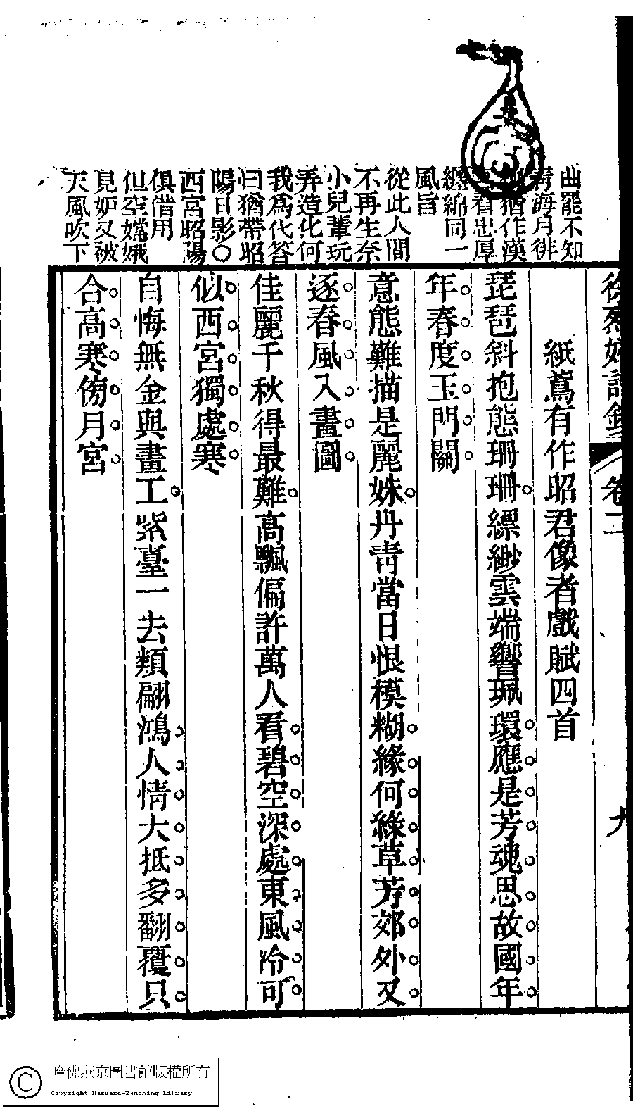 | (PRINT FRIENDLY VERSION) 徐烈婦詩鈔﹕二卷﹐附吳絳雪年譜﹕一卷(清吳宗愛撰)。清光緒元年(1875)雲鶴仙館刻本。 ![]() 頁碼 : 2.9b | 点 击 放 大 | 返回 |