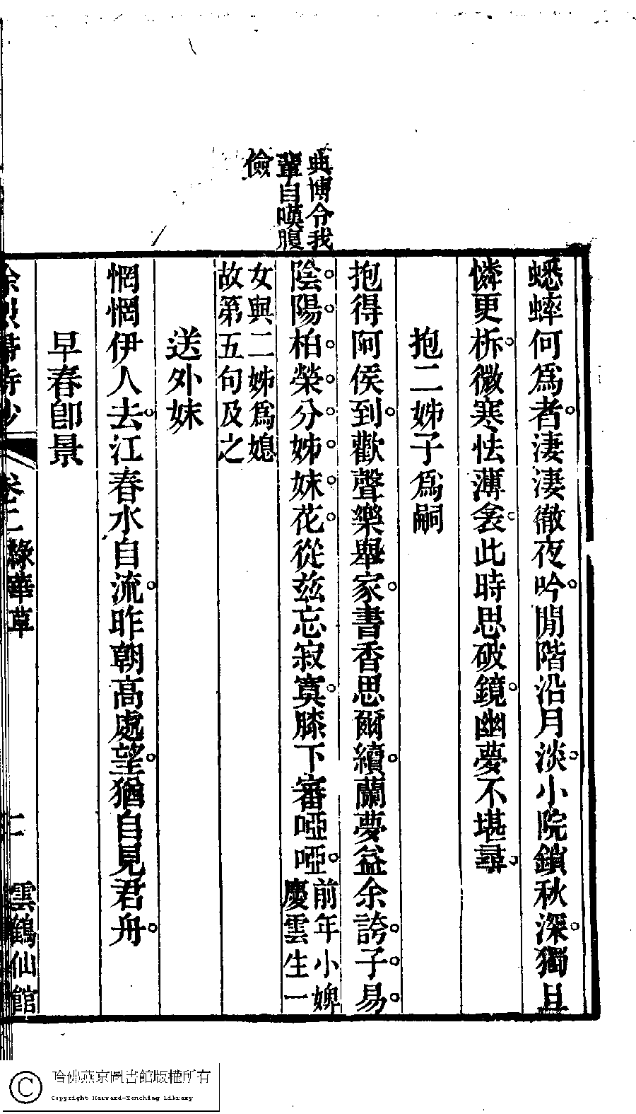 | 原書: 徐烈婦詩鈔﹕二卷﹐附吳絳雪年譜﹕一卷(清吳宗愛撰) |