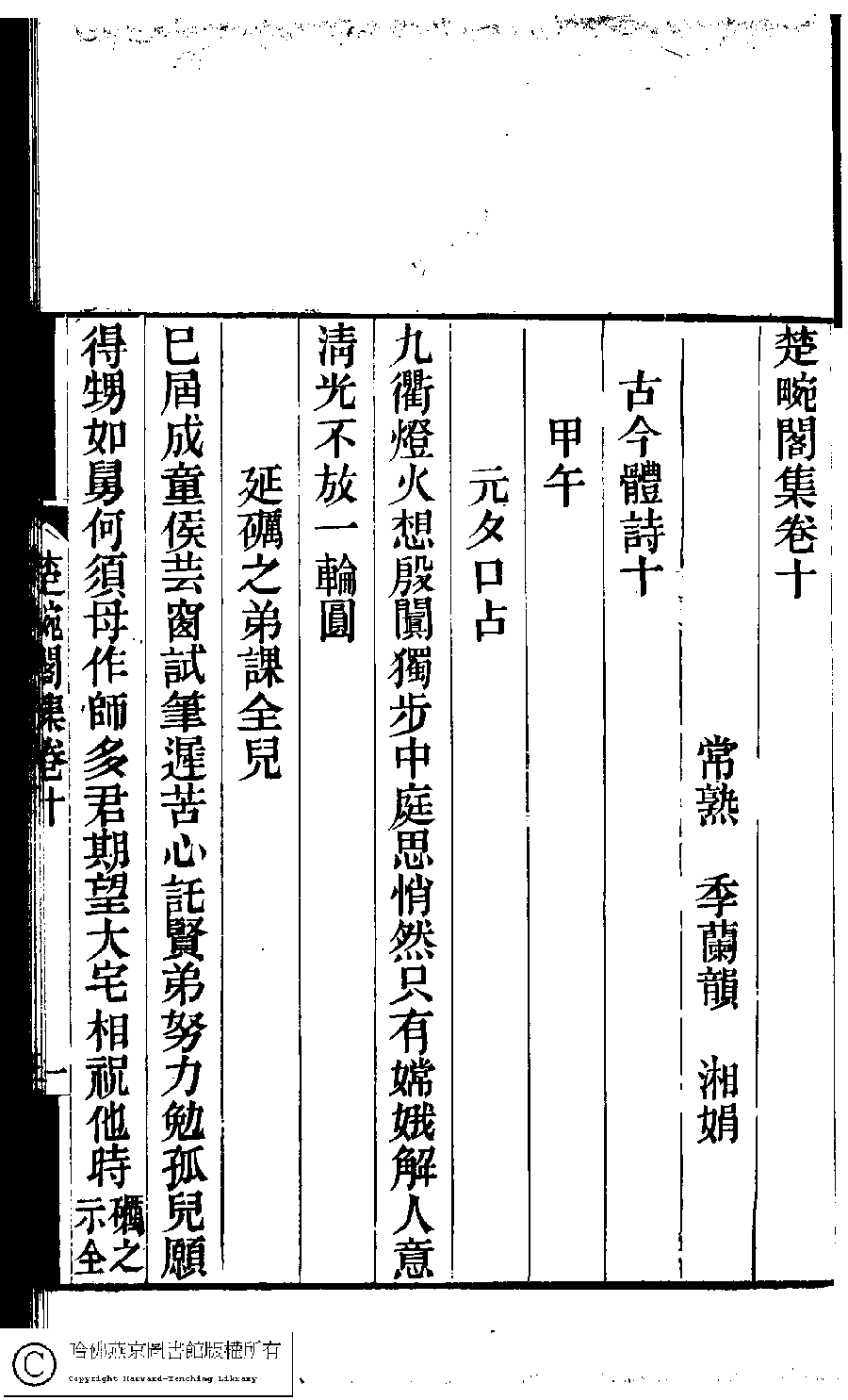 | 原書: 楚畹閣集﹕十二卷(清季蘭韻撰) |