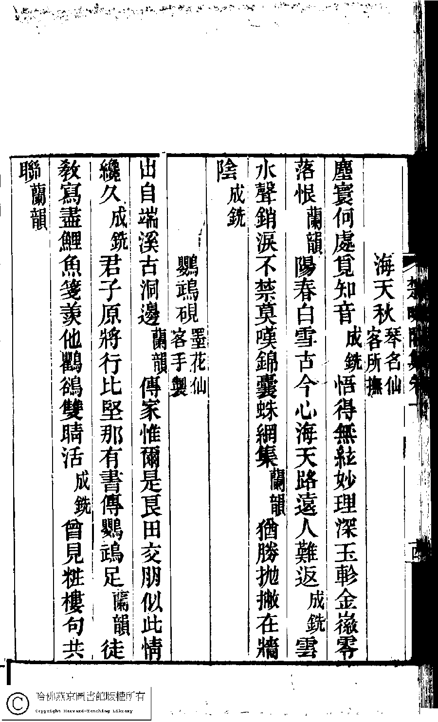 詩詞 [繡囊齋銷夏雜咏﹕海天秋(琴名仙客所撫)]