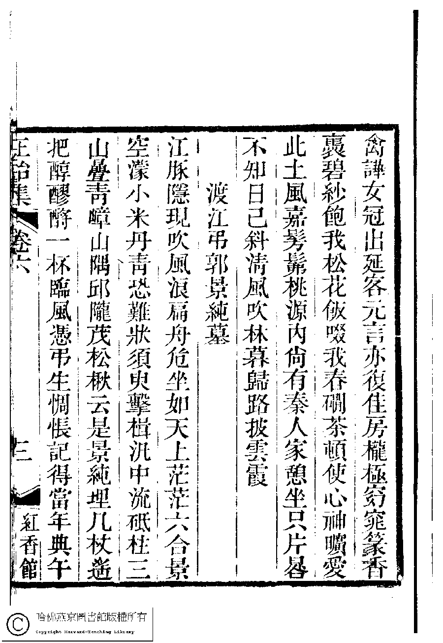 | 原書: 國朝閨秀正始集﹕二十卷﹐附錄﹕一卷﹐補遺﹕一卷﹐又附題詞﹕一卷(清惲珠輯) |