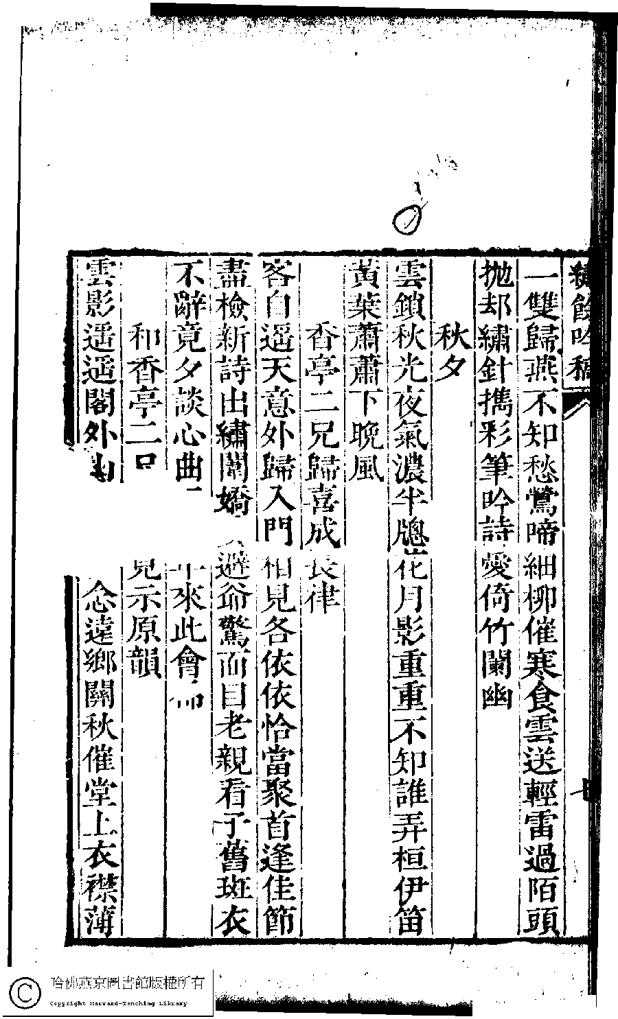 繡餘吟稿﹕一卷(清袁棠撰)。清刻《隨園三十種》本