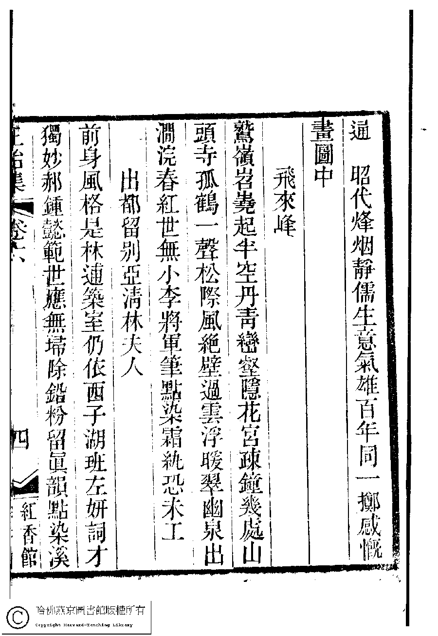 | 原書: 國朝閨秀正始集﹕二十卷﹐附錄﹕一卷﹐補遺﹕一卷﹐又附題詞﹕一卷(清惲珠輯) |