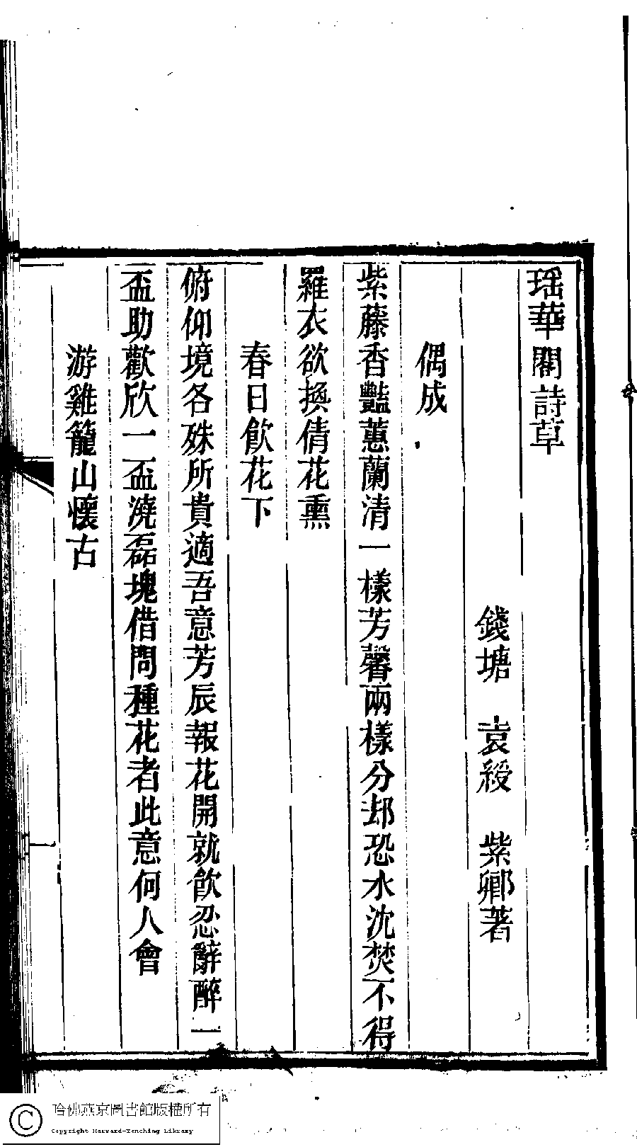 | 原書: 瑤華閣詩草﹕一卷﹐閩南雜咏﹕一卷﹐詞﹕一卷﹐詞補遺﹕一卷(清袁綬撰) |