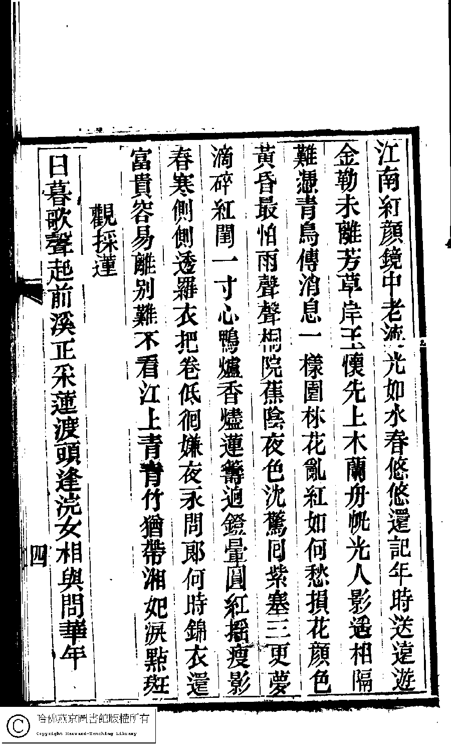 | (PRINT FRIENDLY VERSION) 瑤華閣詩草﹕一卷﹐閩南雜咏﹕一卷﹐詞﹕一卷﹐詞補遺﹕一卷(清袁綬撰)。清同治六年(1867)刻本。 ![]() 頁碼 : 1.4a | 点 击 放 大 | 瑤華閣詩草﹕一卷﹐閩南雜咏﹕一卷﹐詞﹕一卷﹐詞補遺﹕一卷(清袁綬撰)。清同治六年(1867)刻本。![]() 頁碼 : 1.3b | 点 击 放 大 | 返回 |