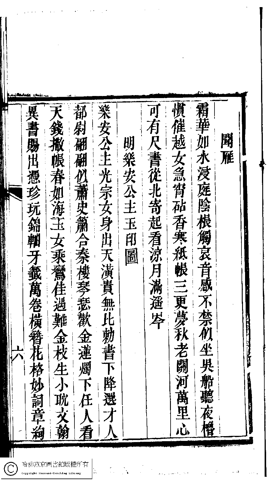 | (PRINT FRIENDLY VERSION) 瑤華閣詩草﹕一卷﹐閩南雜咏﹕一卷﹐詞﹕一卷﹐詞補遺﹕一卷(清袁綬撰)。清同治六年(1867)刻本。 ![]() 頁碼 : 1.7a | 点 击 放 大 | 瑤華閣詩草﹕一卷﹐閩南雜咏﹕一卷﹐詞﹕一卷﹐詞補遺﹕一卷(清袁綬撰)。清同治六年(1867)刻本。![]() 頁碼 : 1.6b | 点 击 放 大 | 瑤華閣詩草﹕一卷﹐閩南雜咏﹕一卷﹐詞﹕一卷﹐詞補遺﹕一卷(清袁綬撰)。清同治六年(1867)刻本。![]() 頁碼 : 1.6a | 点 击 放 大 | 返回 |