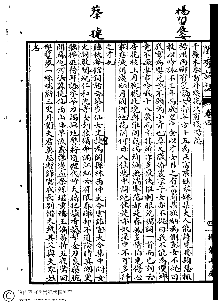 | (PRINT FRIENDLY VERSION) 閨秀詞話﹕四卷(雷瑨、雷瑊輯)。民國五年(1916)掃葉山房石印本 ![]() 頁碼 : 4.4b | 点 击 放 大 | 閨秀詞話﹕四卷(雷瑨、雷瑊輯)。民國五年(1916)掃葉山房石印本![]() 頁碼 : 4.4a | 点 击 放 大 | 返回 |