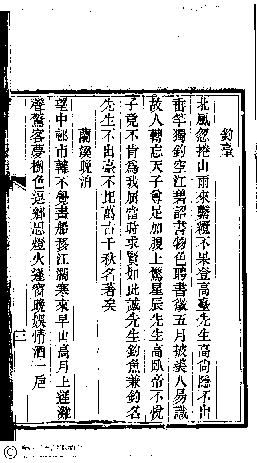 | (PRINT FRIENDLY VERSION) 瑤華閣詩草﹕一卷﹐閩南雜咏﹕一卷﹐詞﹕一卷﹐詞補遺﹕一卷(清袁綬撰)。清同治六年(1867)刻本。 ![]() 頁碼 : 2.3a | 点 击 放 大 | 返回 |