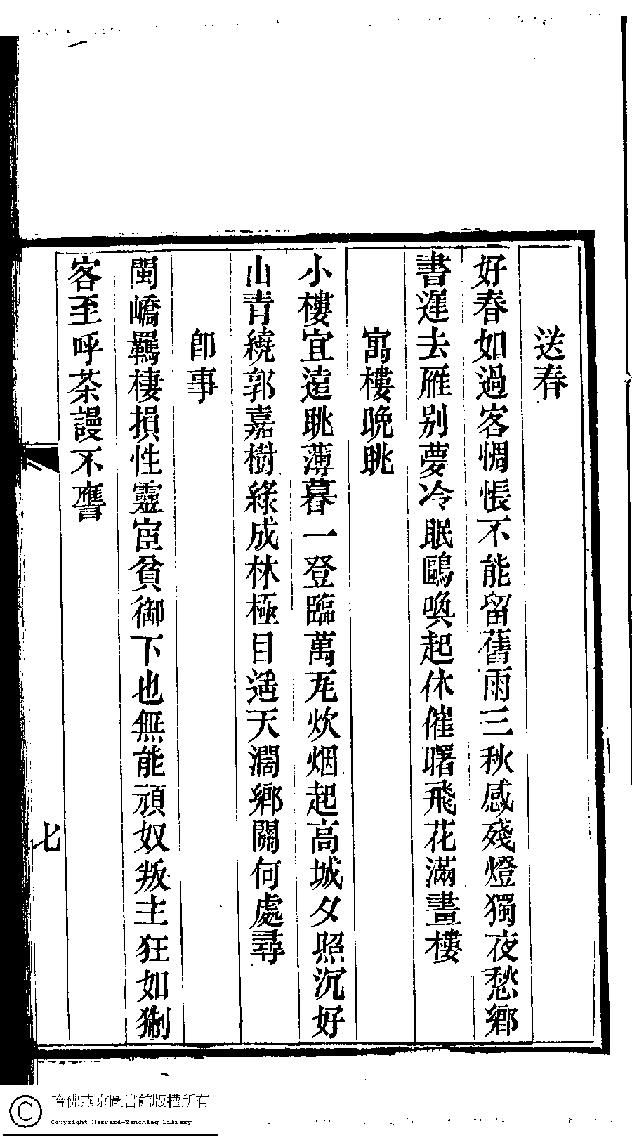 | (PRINT FRIENDLY VERSION) 瑤華閣詩草﹕一卷﹐閩南雜咏﹕一卷﹐詞﹕一卷﹐詞補遺﹕一卷(清袁綬撰)。清同治六年(1867)刻本。 ![]() 頁碼 : 2.7a | 点 击 放 大 | 返回 |
