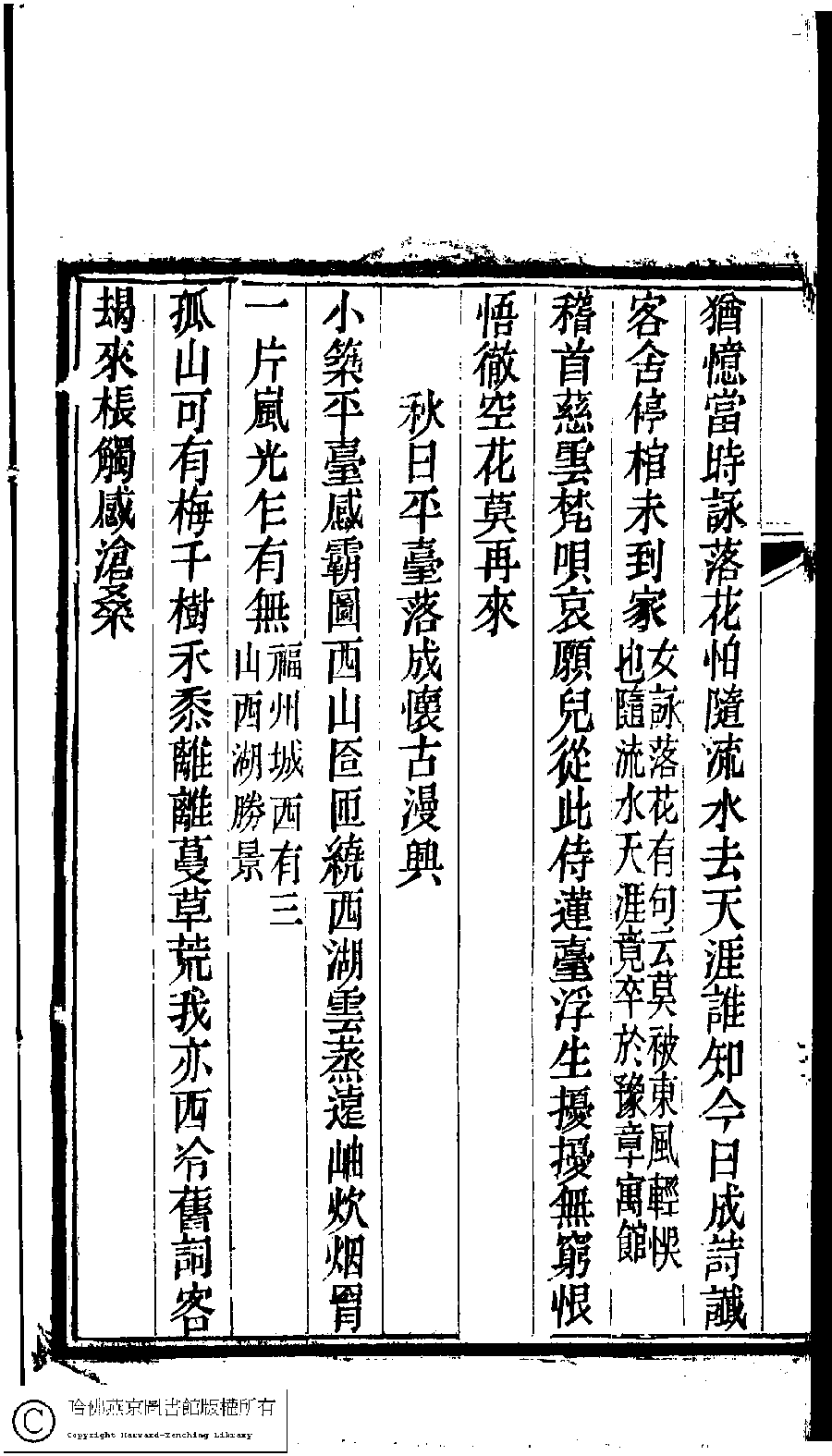 | (PRINT FRIENDLY VERSION) 瑤華閣詩草﹕一卷﹐閩南雜咏﹕一卷﹐詞﹕一卷﹐詞補遺﹕一卷(清袁綬撰)。清同治六年(1867)刻本。 ![]() 頁碼 : 2.14b | 点 击 放 大 | 瑤華閣詩草﹕一卷﹐閩南雜咏﹕一卷﹐詞﹕一卷﹐詞補遺﹕一卷(清袁綬撰)。清同治六年(1867)刻本。![]() 頁碼 : 2.14a | 点 击 放 大 | 瑤華閣詩草﹕一卷﹐閩南雜咏﹕一卷﹐詞﹕一卷﹐詞補遺﹕一卷(清袁綬撰)。清同治六年(1867)刻本。![]() 頁碼 : 2.13b | 点 击 放 大 | 返回 |