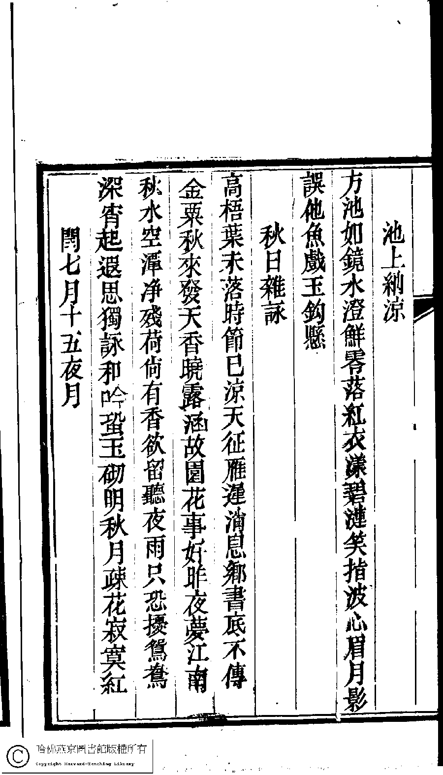 | (PRINT FRIENDLY VERSION) 瑤華閣詩草﹕一卷﹐閩南雜咏﹕一卷﹐詞﹕一卷﹐詞補遺﹕一卷(清袁綬撰)。清同治六年(1867)刻本。 ![]() 頁碼 : 2.15b | 点 击 放 大 | 返回 |