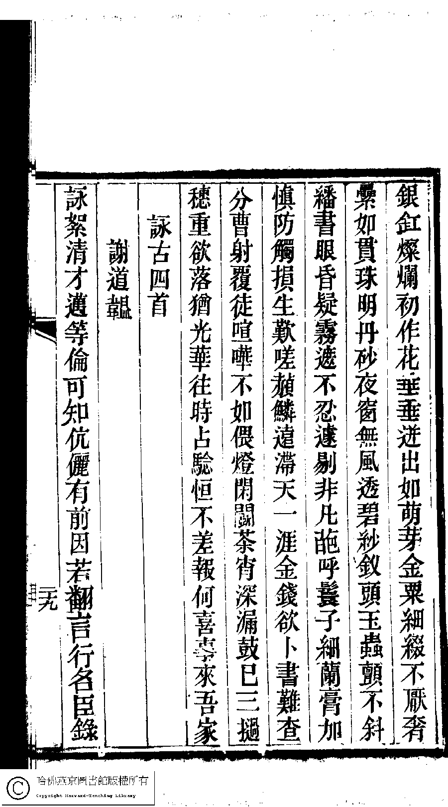 | (PRINT FRIENDLY VERSION) 瑤華閣詩草﹕一卷﹐閩南雜咏﹕一卷﹐詞﹕一卷﹐詞補遺﹕一卷(清袁綬撰)。清同治六年(1867)刻本。 ![]() 頁碼 : 2.29a | 点 击 放 大 | 瑤華閣詩草﹕一卷﹐閩南雜咏﹕一卷﹐詞﹕一卷﹐詞補遺﹕一卷(清袁綬撰)。清同治六年(1867)刻本。![]() 頁碼 : 2.28b | 点 击 放 大 | 返回 |