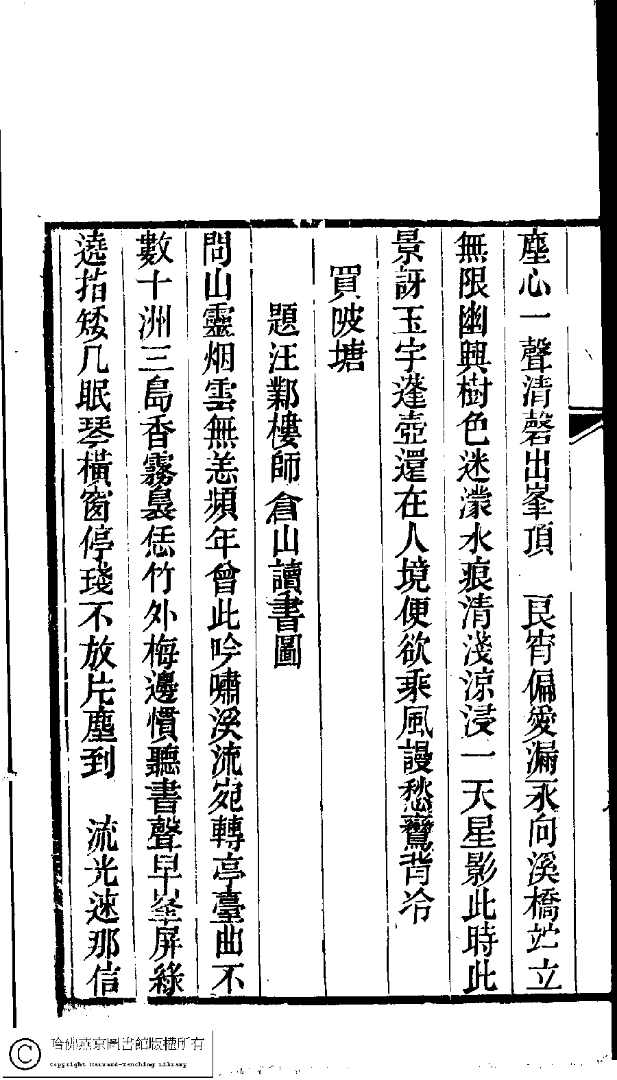詩詞 [買陂塘 ﹕題汪鄴樓師倉山讀書圖]
