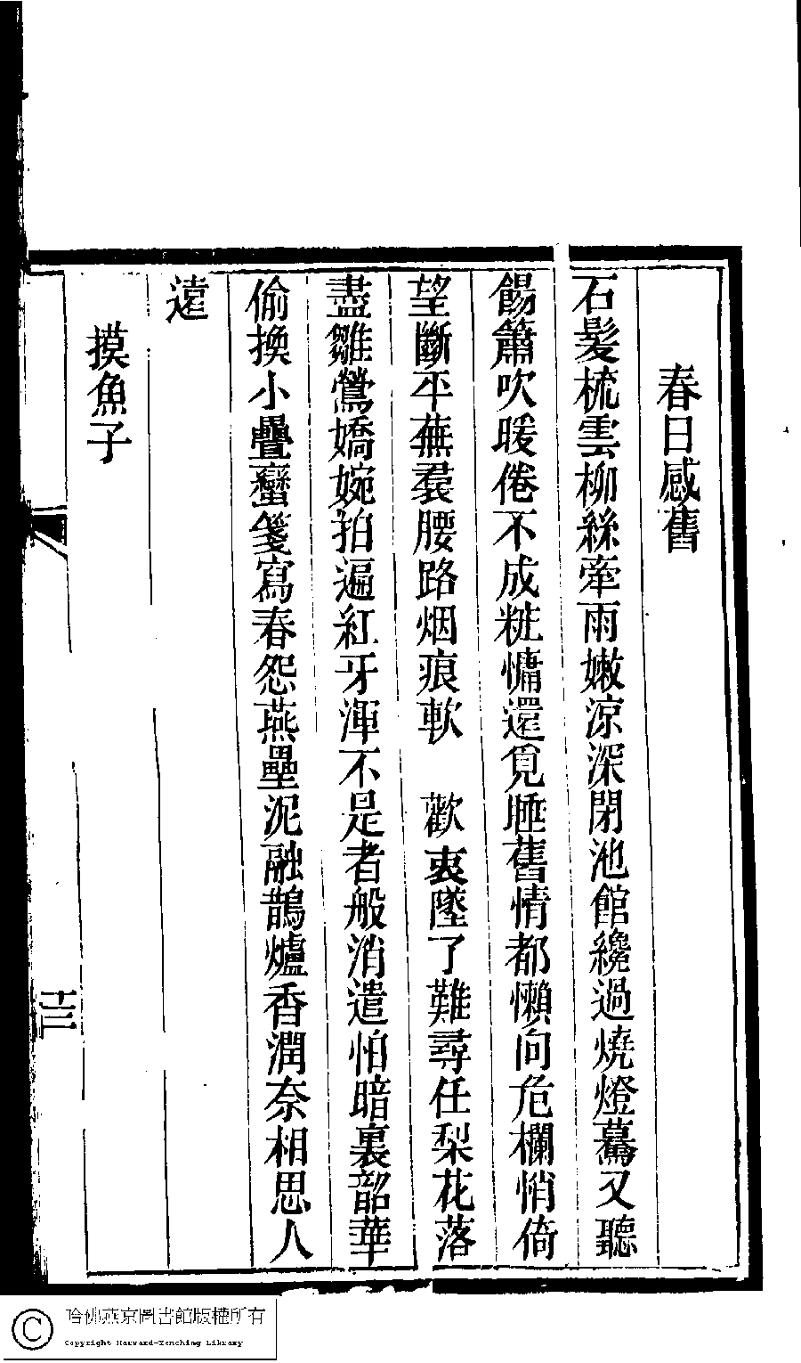 | (PRINT FRIENDLY VERSION) 瑤華閣詩草﹕一卷﹐閩南雜咏﹕一卷﹐詞﹕一卷﹐詞補遺﹕一卷(清袁綬撰)。清同治六年(1867)刻本。 ![]() 頁碼 : 3.13a | 点 击 放 大 | 瑤華閣詩草﹕一卷﹐閩南雜咏﹕一卷﹐詞﹕一卷﹐詞補遺﹕一卷(清袁綬撰)。清同治六年(1867)刻本。![]() 頁碼 : 3.12b | 点 击 放 大 | 返回 |