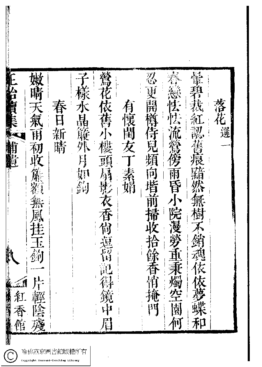 | 原書: 國朝閨秀正始續集﹕十卷﹐附錄﹕一卷﹐補遺﹕一卷﹐輓詞﹕一卷(清惲珠輯) |
