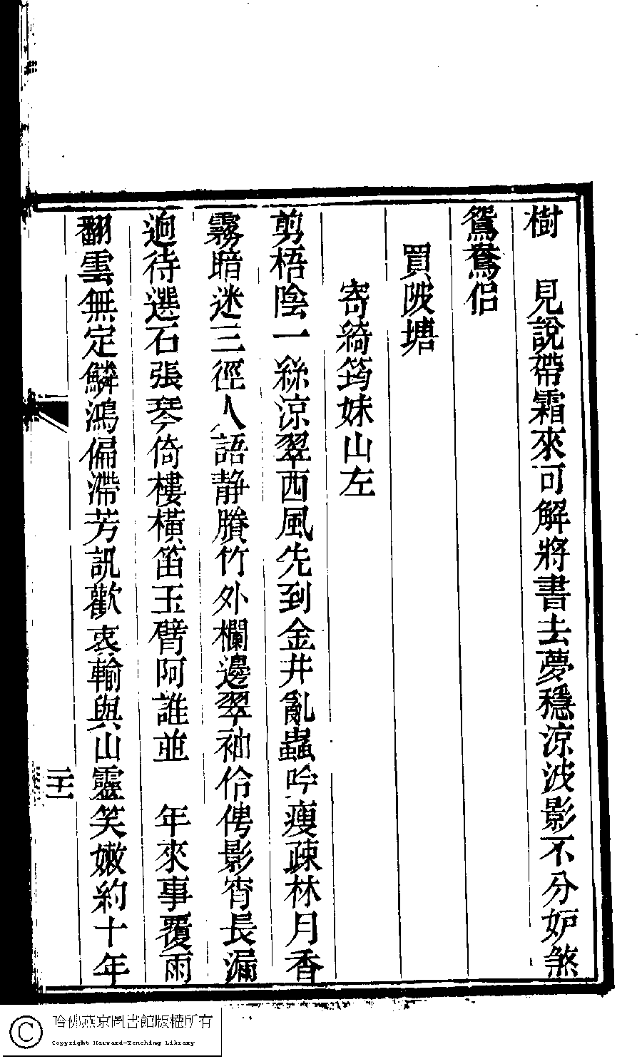 | (PRINT FRIENDLY VERSION) 瑤華閣詩草﹕一卷﹐閩南雜咏﹕一卷﹐詞﹕一卷﹐詞補遺﹕一卷(清袁綬撰)。清同治六年(1867)刻本。 ![]() 頁碼 : 3.21a | 点 击 放 大 | 瑤華閣詩草﹕一卷﹐閩南雜咏﹕一卷﹐詞﹕一卷﹐詞補遺﹕一卷(清袁綬撰)。清同治六年(1867)刻本。![]() 頁碼 : 3.20b | 点 击 放 大 | 返回 |