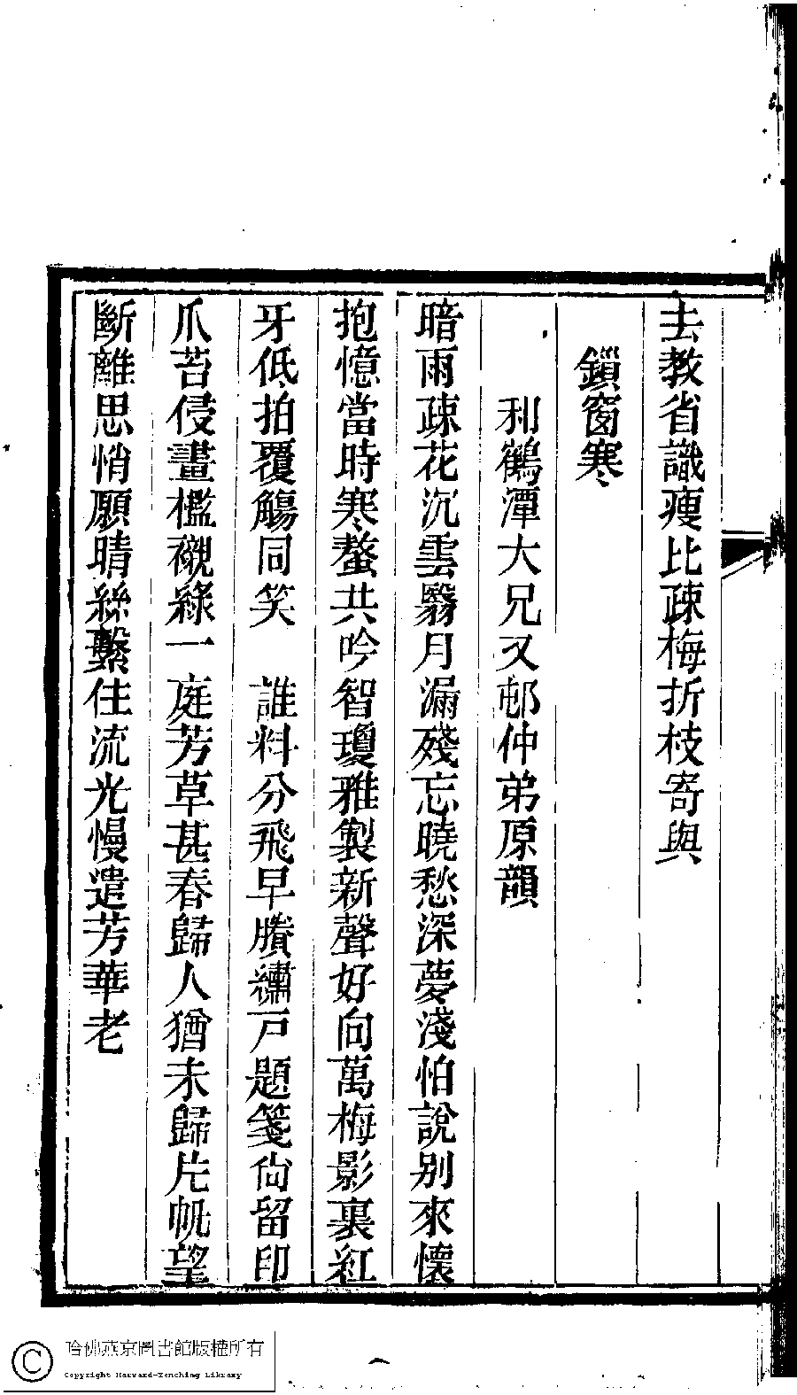 詩詞 [鎖窗寒 ﹕和鶴潭大兄又邨仲弟原韻]