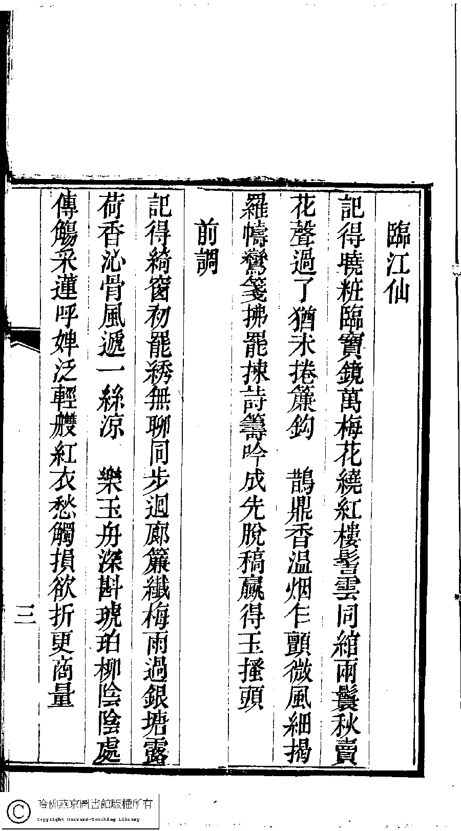 | (PRINT FRIENDLY VERSION) 瑤華閣詩草﹕一卷﹐閩南雜咏﹕一卷﹐詞﹕一卷﹐詞補遺﹕一卷(清袁綬撰)。清同治六年(1867)刻本。 ![]() 頁碼 : 4.3a | 点 击 放 大 | 返回 |