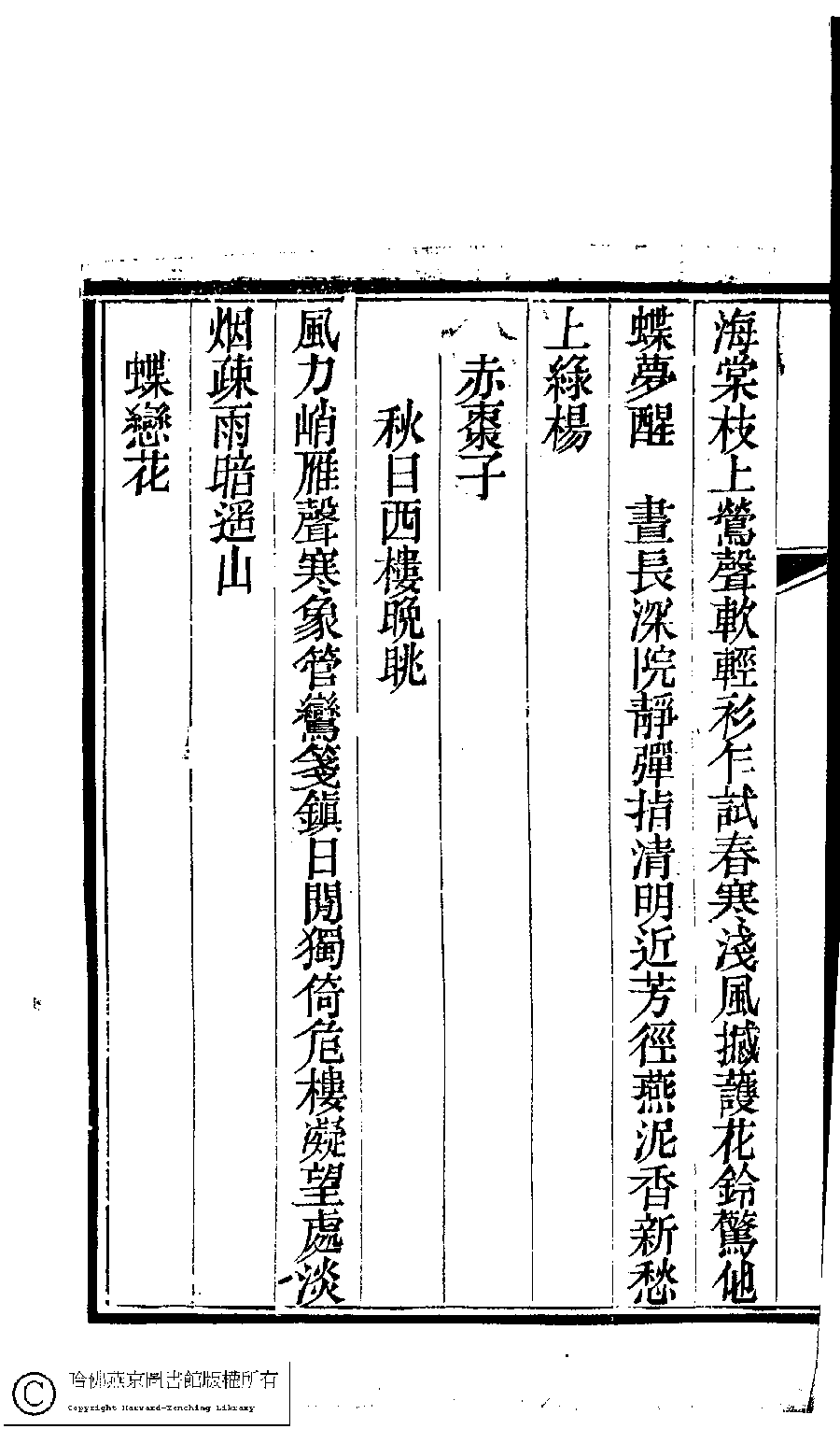 | (PRINT FRIENDLY VERSION) 瑤華閣詩草﹕一卷﹐閩南雜咏﹕一卷﹐詞﹕一卷﹐詞補遺﹕一卷(清袁綬撰)。清同治六年(1867)刻本。 ![]() 頁碼 : 4.4b | 点 击 放 大 | 返回 |