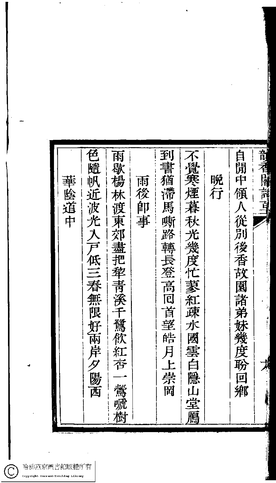 | (PRINT FRIENDLY VERSION) 韻香閣詩草﹕一卷(清孔祥淑撰)。清光緖十二年(1886)刻本。 ![]() 頁碼 : 6b | 点 击 放 大 | 返回 |