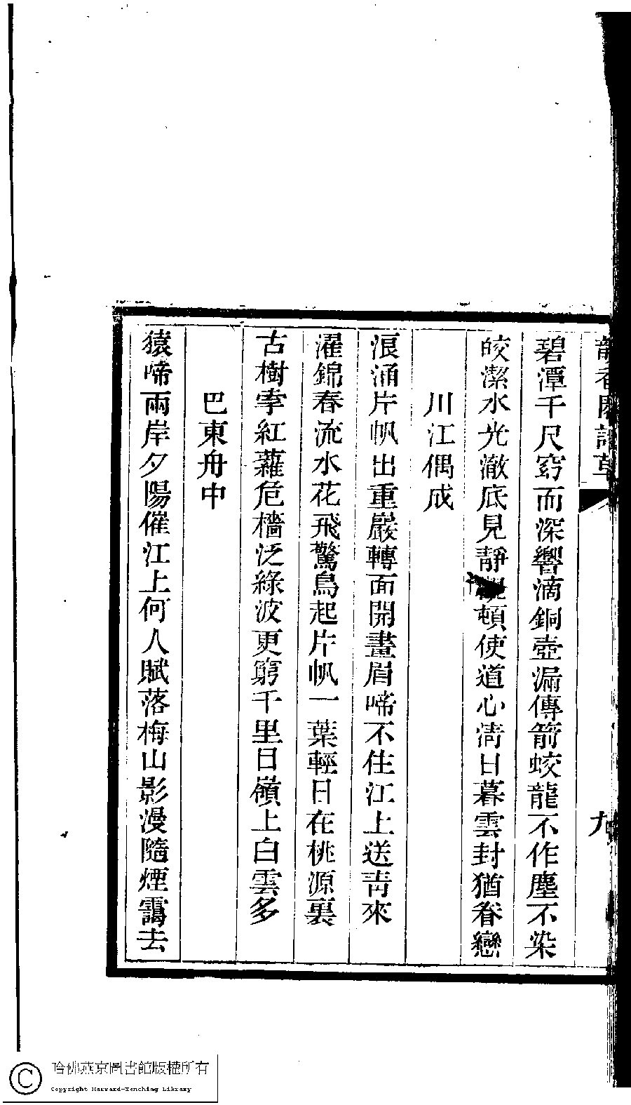 | (PRINT FRIENDLY VERSION) 韻香閣詩草﹕一卷(清孔祥淑撰)。清光緖十二年(1886)刻本。 ![]() 頁碼 : 10a | 点 击 放 大 | 韻香閣詩草﹕一卷(清孔祥淑撰)。清光緖十二年(1886)刻本。![]() 頁碼 : 9b | 点 击 放 大 | 返回 |