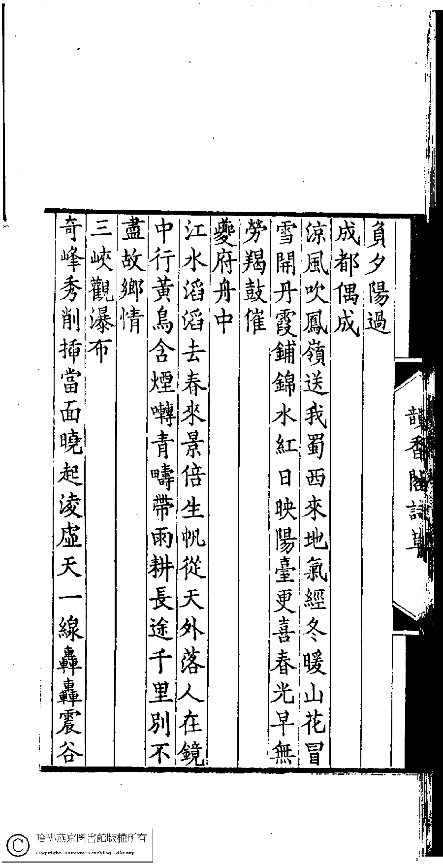 | (PRINT FRIENDLY VERSION) 韻香閣詩草﹕一卷(清孔祥淑撰)。清光緖十五年(1889)刻本。 ![]() 頁碼 : 7b | 点 击 放 大 | 返回 |
