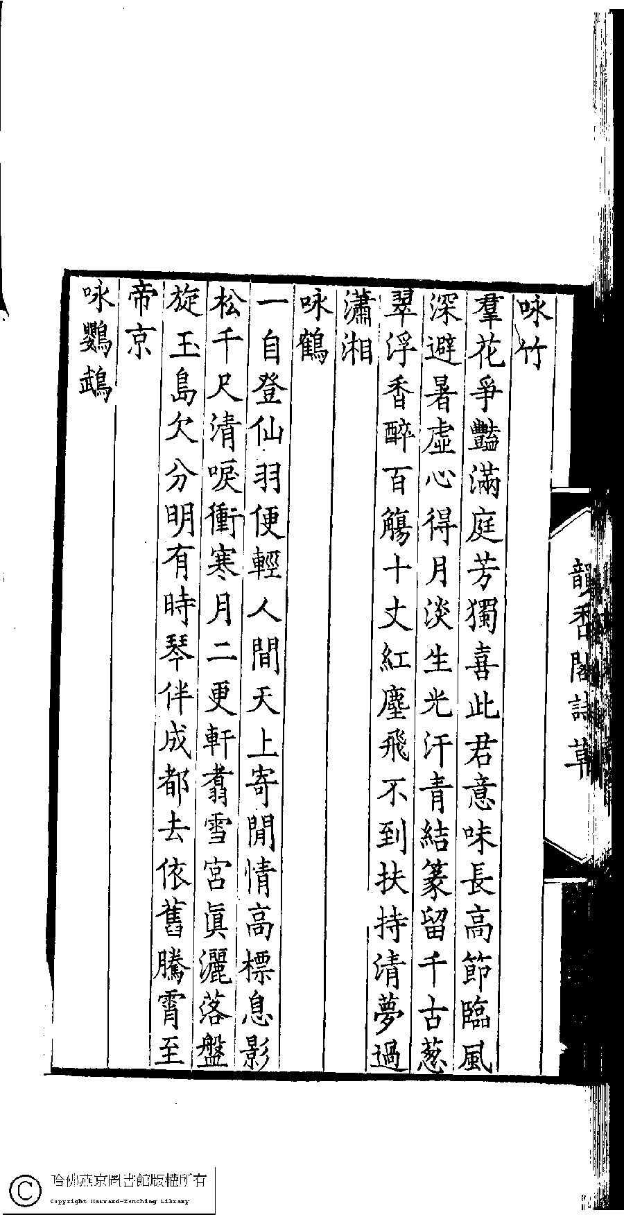 | (PRINT FRIENDLY VERSION) 韻香閣詩草﹕一卷(清孔祥淑撰)。清光緖十五年(1889)刻本。 ![]() 頁碼 : 12b | 点 击 放 大 | 返回 |