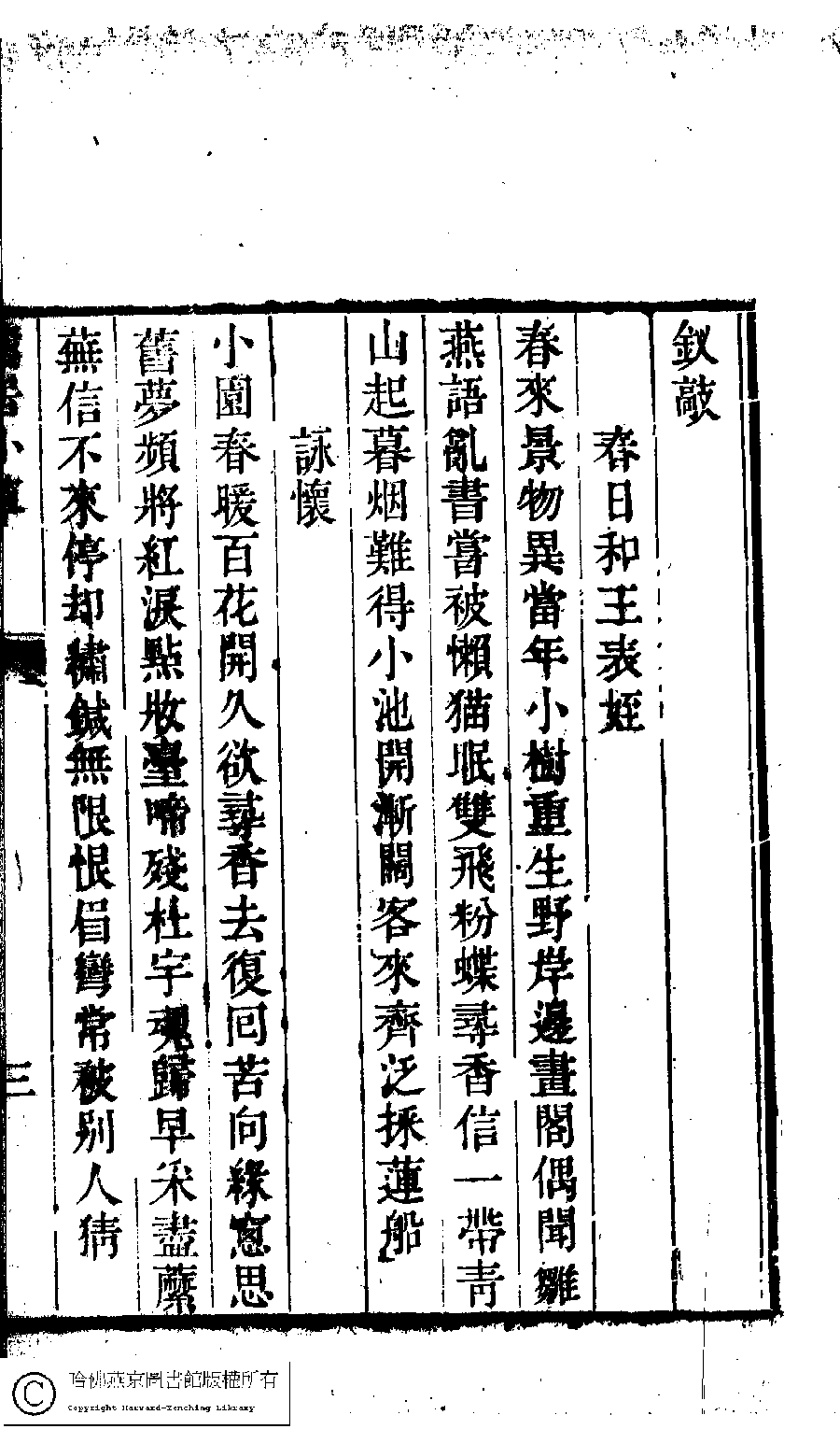 | (PRINT FRIENDLY VERSION) 樓居小草﹕一卷(清袁杼撰)。清嘉慶間(1796-1820)刻本。 ![]() 頁碼 : 3a | 点 击 放 大 | 樓居小草﹕一卷(清袁杼撰)。清嘉慶間(1796-1820)刻本。![]() 頁碼 : 2b | 点 击 放 大 | 返回 |