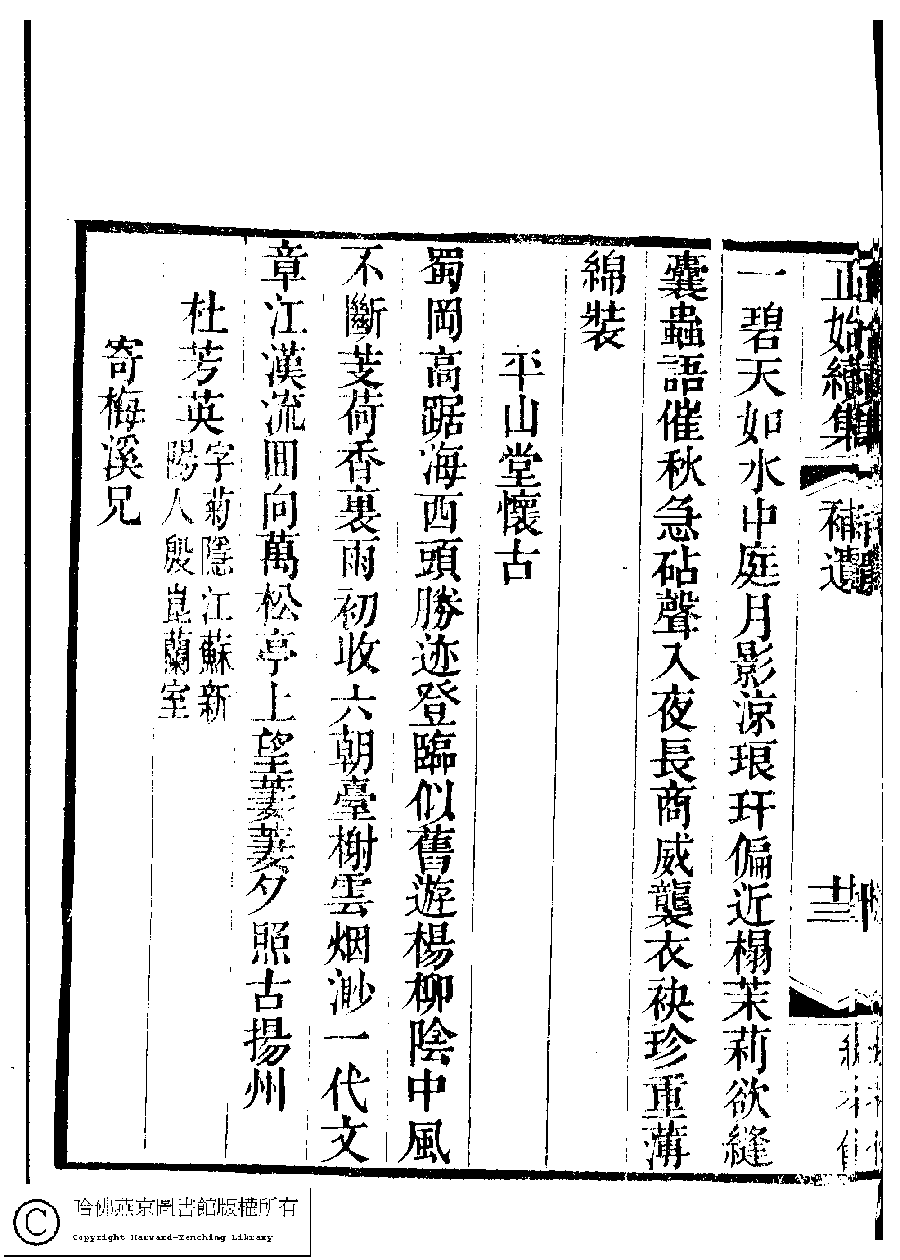 | 原書: 國朝閨秀正始續集﹕十卷﹐附錄﹕一卷﹐補遺﹕一卷﹐輓詞﹕一卷(清惲珠輯) |
