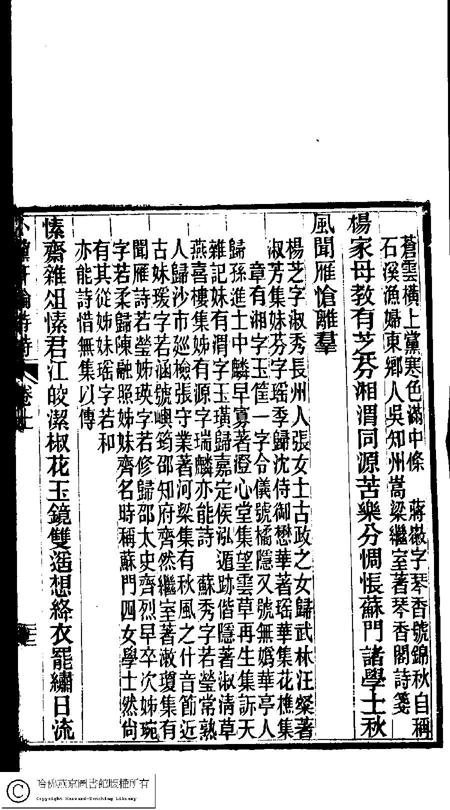 | (PRINT FRIENDLY VERSION) 陳孝女遺集﹕二卷﹔小黛軒論詩詩﹕二卷(清陳芸撰)。民國三年(1914)刻本 ![]() 頁碼 : 上.22a | 点 击 放 大 | 陳孝女遺集﹕二卷﹔小黛軒論詩詩﹕二卷(清陳芸撰)。民國三年(1914)刻本![]() 頁碼 : 上.21b | 点 击 放 大 | 返回 |