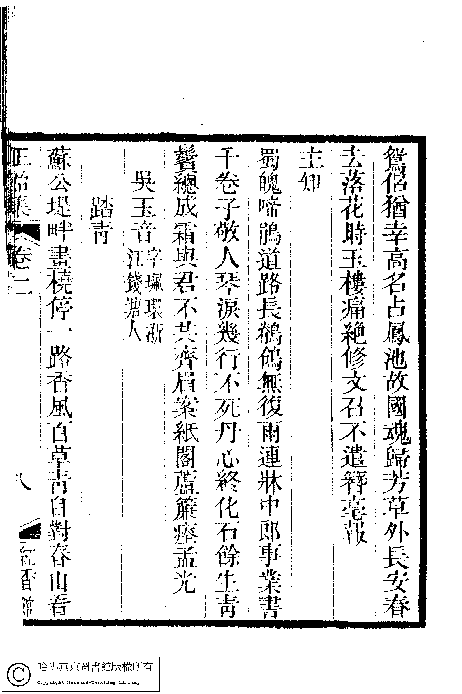 | 原書: 國朝閨秀正始集﹕二十卷﹐附錄﹕一卷﹐補遺﹕一卷﹐又附題詞﹕一卷(清惲珠輯) |