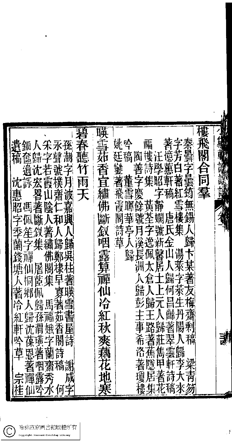 | (PRINT FRIENDLY VERSION) 陳孝女遺集﹕二卷﹔小黛軒論詩詩﹕二卷(清陳芸撰)。民國三年(1914)刻本 ![]() 頁碼 : 下.25a | 点 击 放 大 | 陳孝女遺集﹕二卷﹔小黛軒論詩詩﹕二卷(清陳芸撰)。民國三年(1914)刻本![]() 頁碼 : 下.24b | 点 击 放 大 | 返回 |