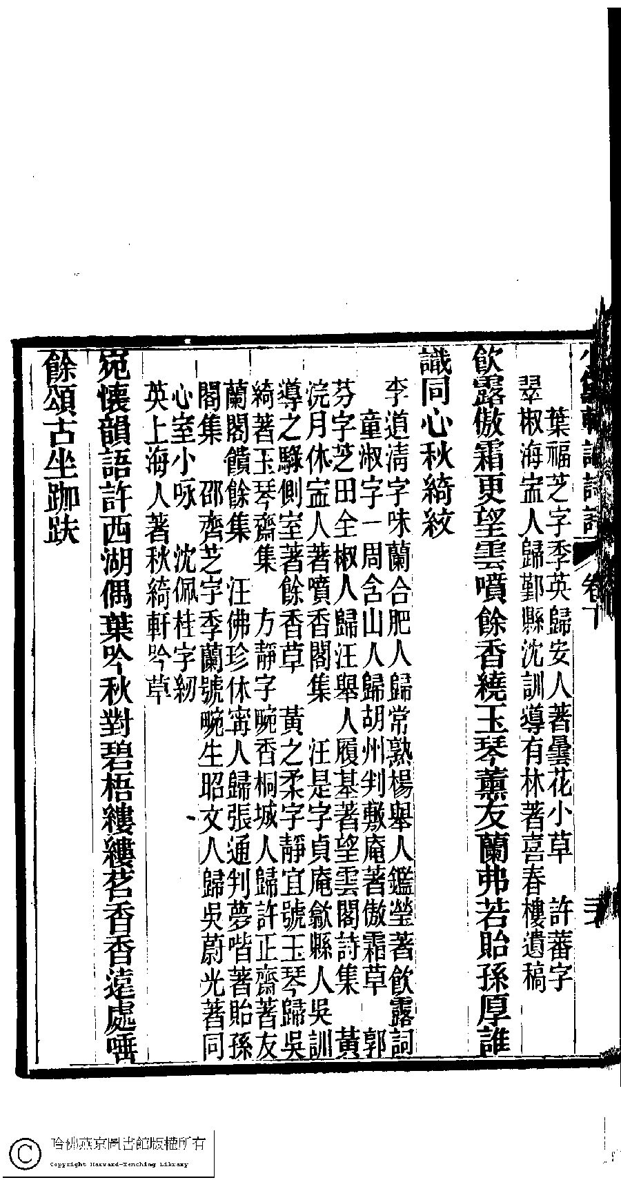 | (PRINT FRIENDLY VERSION) 陳孝女遺集﹕二卷﹔小黛軒論詩詩﹕二卷(清陳芸撰)。民國三年(1914)刻本 ![]() 頁碼 : 下.27b | 点 击 放 大 | 陳孝女遺集﹕二卷﹔小黛軒論詩詩﹕二卷(清陳芸撰)。民國三年(1914)刻本![]() 頁碼 : 下.27a | 点 击 放 大 | 返回 |
