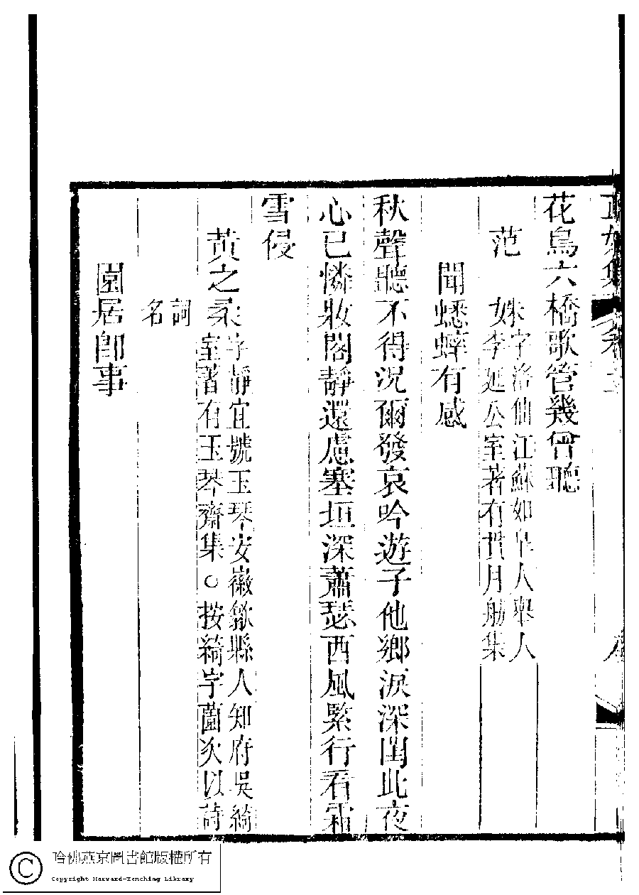 | 原書: 國朝閨秀正始集﹕二十卷﹐附錄﹕一卷﹐補遺﹕一卷﹐又附題詞﹕一卷(清惲珠輯) |