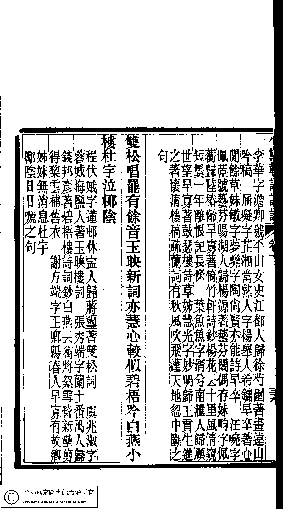 | (PRINT FRIENDLY VERSION) 陳孝女遺集﹕二卷﹔小黛軒論詩詩﹕二卷(清陳芸撰)。民國三年(1914)刻本 ![]() 頁碼 : 下.39b | 点 击 放 大 | 返回 |