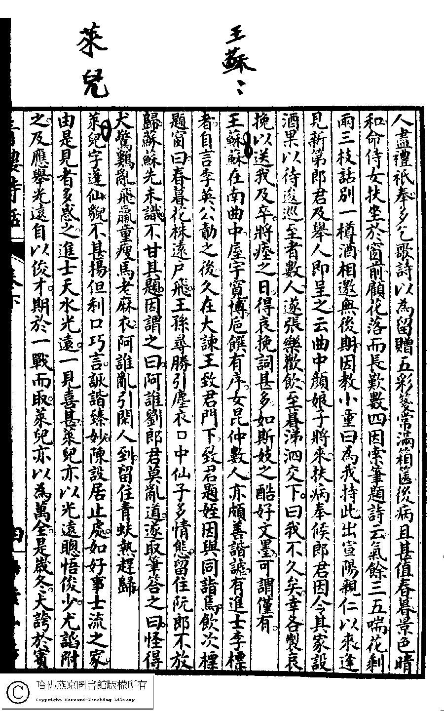 | (PRINT FRIENDLY VERSION) 青樓詩話﹕二卷(雷瑨輯)。民國五年(1916)掃葉山房石印本。 ![]() 頁碼 : 下.4b | 点 击 放 大 | 青樓詩話﹕二卷(雷瑨輯)。民國五年(1916)掃葉山房石印本。![]() 頁碼 : 下.4a | 点 击 放 大 | 返回 |