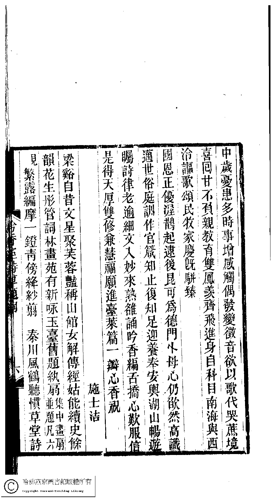 | (PRINT FRIENDLY VERSION) 吟香室詩草﹕二卷﹐續刻﹕一卷﹐附刻﹕一卷(清楊蘊輝撰)。清光緒二十三年(1897)刻本。 ![]() 頁碼 : 題詞 | 点 击 放 大 | 吟香室詩草﹕二卷﹐續刻﹕一卷﹐附刻﹕一卷(清楊蘊輝撰)。清光緒二十三年(1897)刻本。![]() 頁碼 : 題詞: 5b | 点 击 放 大 | 返回 |