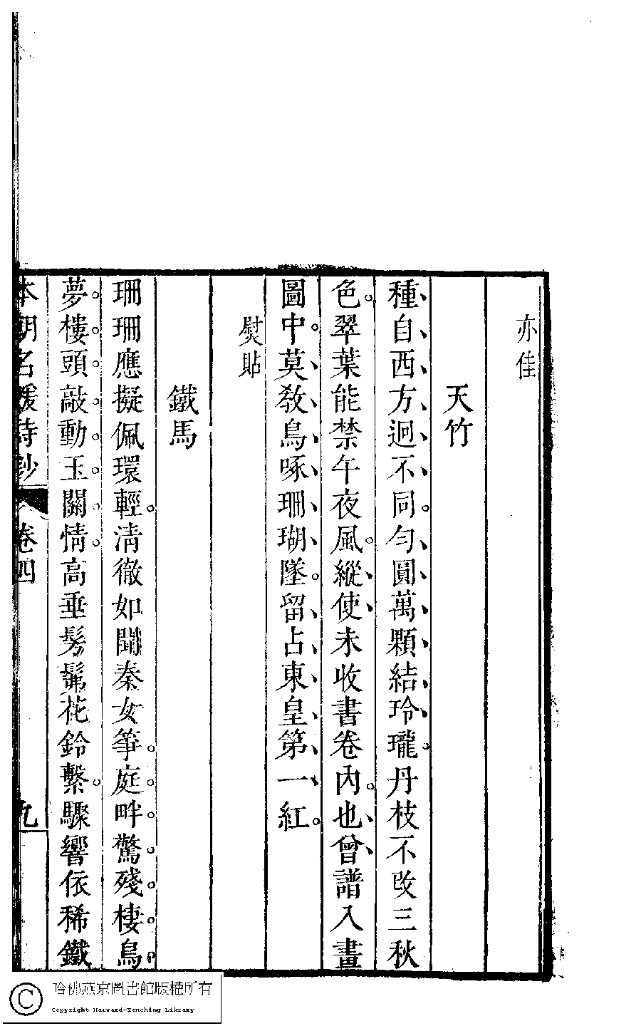 | (PRINT FRIENDLY VERSION) 本朝名媛詩鈔﹕六卷(清胡孝思輯)。清康熙五十五年(1716)凌雲閣刻本 ![]() 頁碼 : 4.9a | 点 击 放 大 | 返回 |