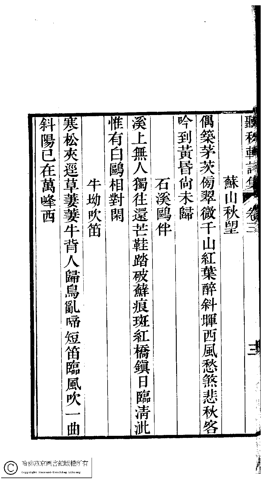 | 原書: 聽秋軒詩集﹕三卷(清駱綺蘭撰) |