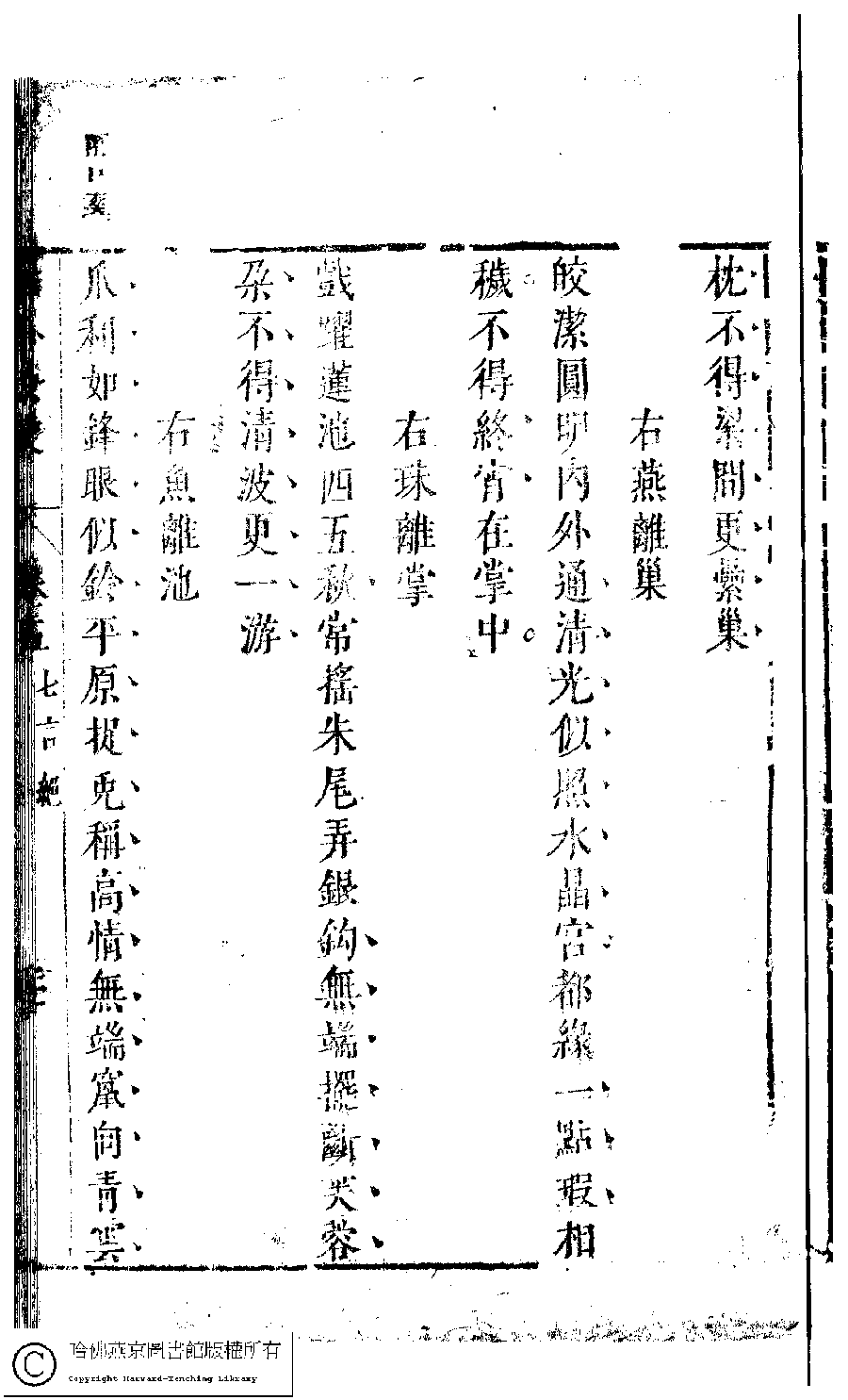 | (PRINT FRIENDLY VERSION) 古今女史﹕十二卷﹐詩集﹕八卷﹐附姓氏字里詳節﹕一卷(明趙世杰輯)。明崇禎(1628-1644)問奇閣刻本 ![]() 頁碼 : 5.21a | 点 击 放 大 | 返回 |