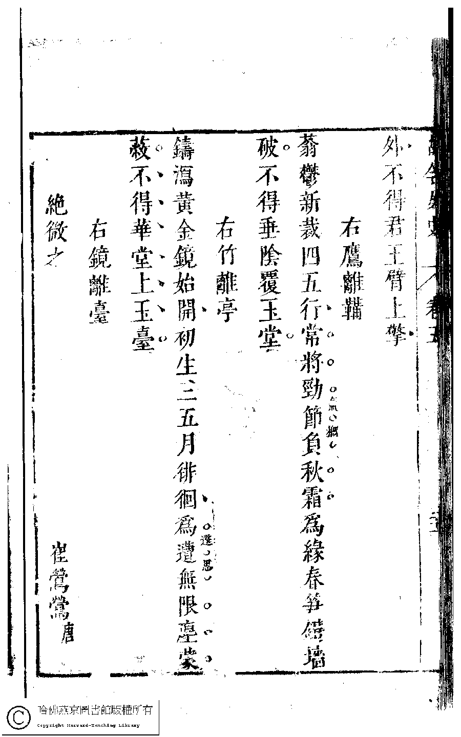 | (PRINT FRIENDLY VERSION) 古今女史﹕十二卷﹐詩集﹕八卷﹐附姓氏字里詳節﹕一卷(明趙世杰輯)。明崇禎(1628-1644)問奇閣刻本 ![]() 頁碼 : 5.21b | 点 击 放 大 | 返回 |
