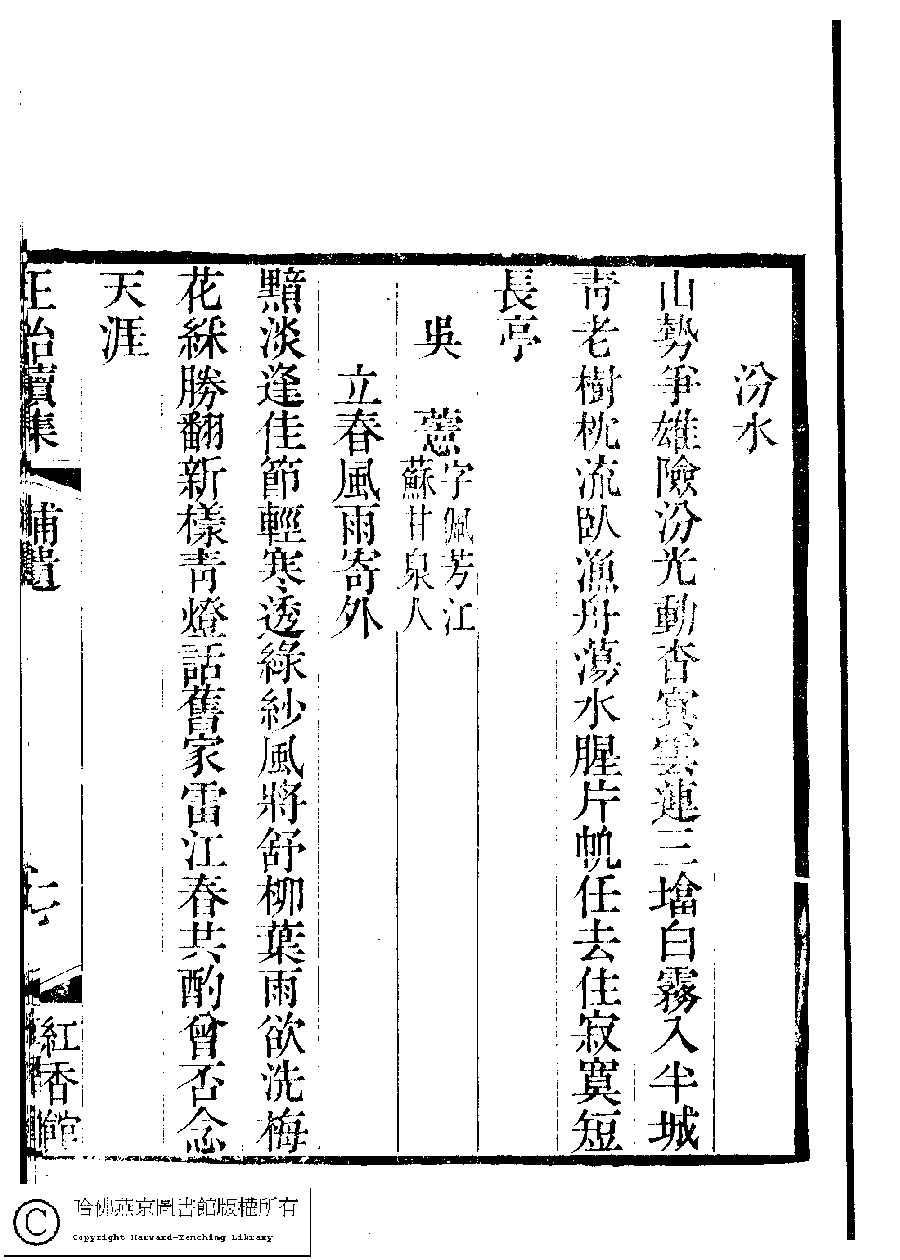 | 原書: 國朝閨秀正始續集﹕十卷﹐附錄﹕一卷﹐補遺﹕一卷﹐輓詞﹕一卷(清惲珠輯) |