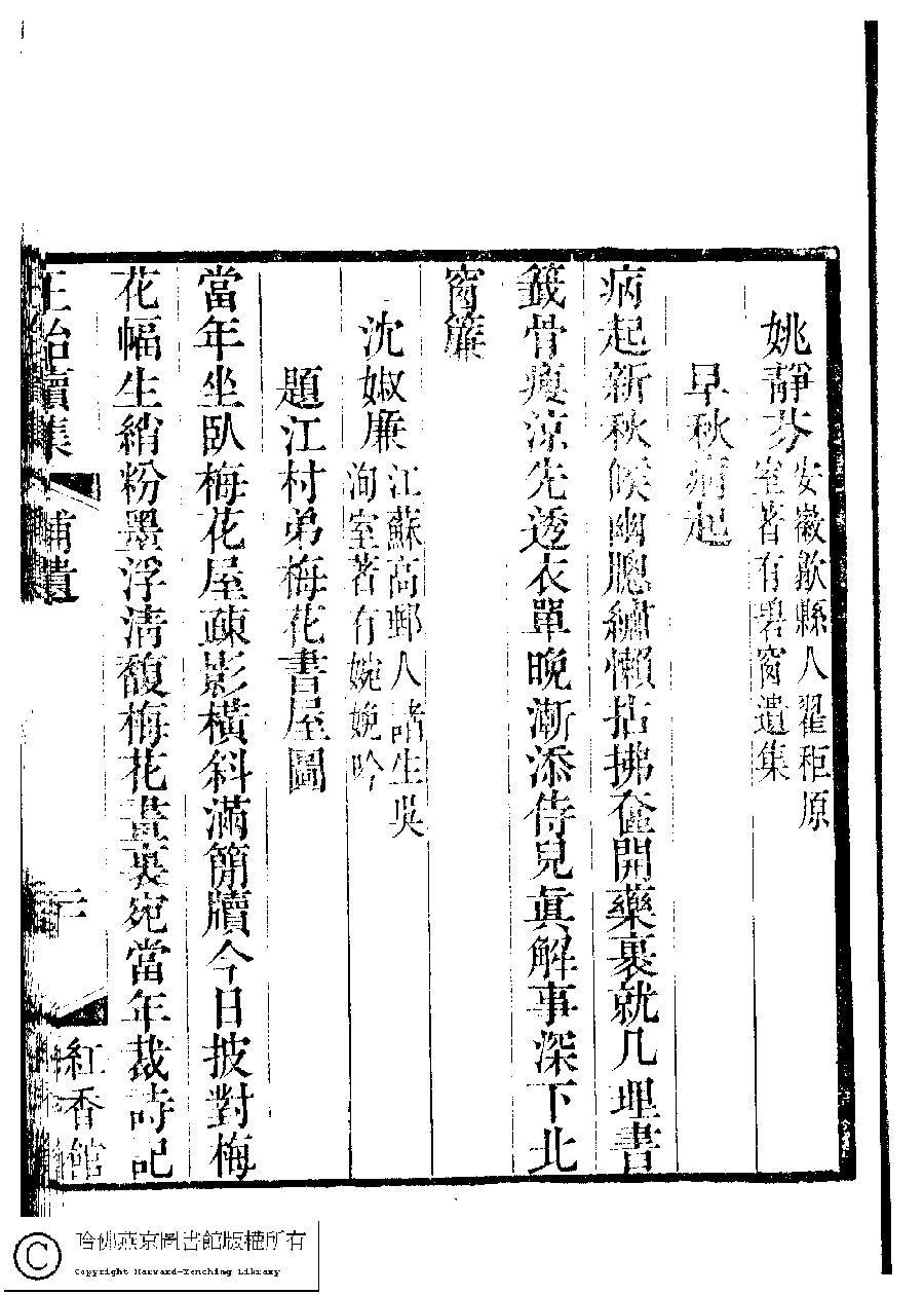 | 原書: 國朝閨秀正始續集﹕十卷﹐附錄﹕一卷﹐補遺﹕一卷﹐輓詞﹕一卷(清惲珠輯) |